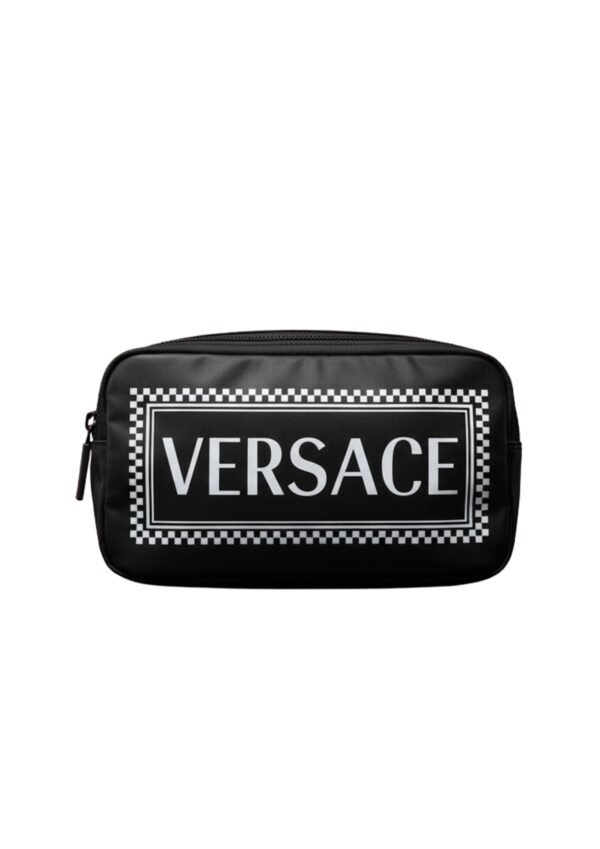 استمتع بإطلالة فاخرة تجمع بين الأناقة الإيطالية والعملية الحديثة مع حقيبة الخصر Versace السوداء للرجال. تأتي الحقيبة بتصميم أنيق يحمل شعار Versace الأيقوني بإطار زخرفي مميز، لتكون قطعة تجمع بين الفخامة والجرأة العصرية.